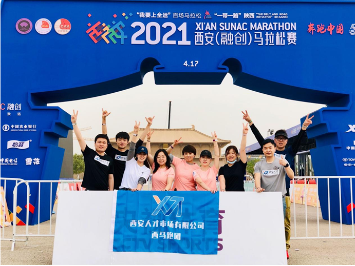 2021年4月17日,永寧門外,西安人才市場(chǎng)有限公司部分員工及來(lái)自西安市社會(huì)保險(xiǎn)管理中心、西安市醫(yī)學(xué)院、新城區(qū)人社局、西安市職業(yè)介紹服務(wù)中心、曲江街辦等合作單位的雇員共9人與2.8萬(wàn)名熱情的跑友站在2021西安馬拉松賽的起點(diǎn)上蓄勢(shì)待發(fā)。