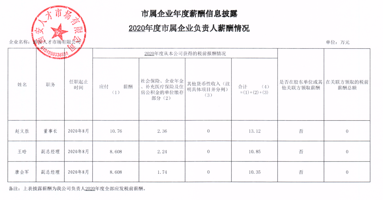 西安人才市場有限公司2020年度企業(yè)負責人薪酬情況公告